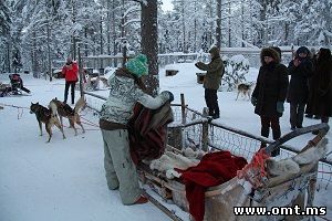 Не менее интересной была и поездка на оленью ферму. Она расположена примерно в восьми километрах от центра Леви, поэтому особого утомления дорога ни у кого не вызвала. Хозяйка фермы Йоханна Хайтанер оказалась очень радушным человеком. Никто не остался без внимания. Йоханна и ее помощники, одетые в национальные саамские костюмы, с радостью откликались на любую просьбу гостей. Здесь каждый смог пообщаться с оленями, прокатиться с ветерком в упряжке и сделать снимки на память.